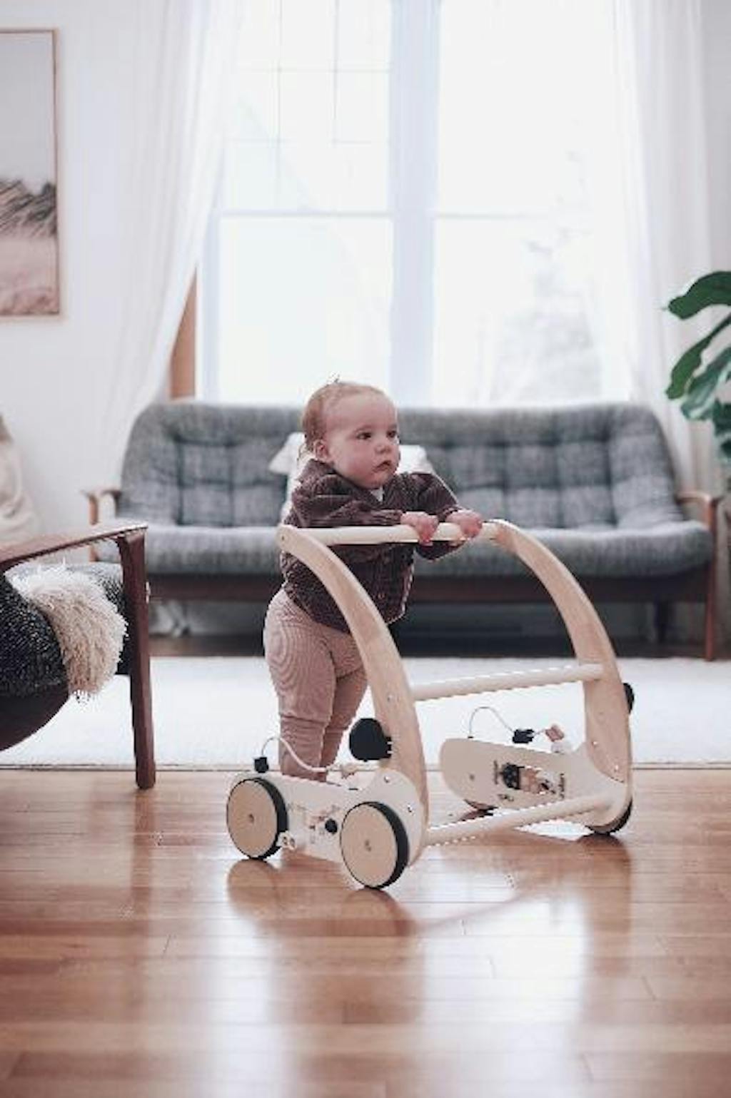 This walker is so perfect. It's sturdy and easy to hold onto. There are toys you can hang on if you want and the little may that comes with it makes it also perfect for tummy time and big bonus: it's in wood! What in not to love about it?