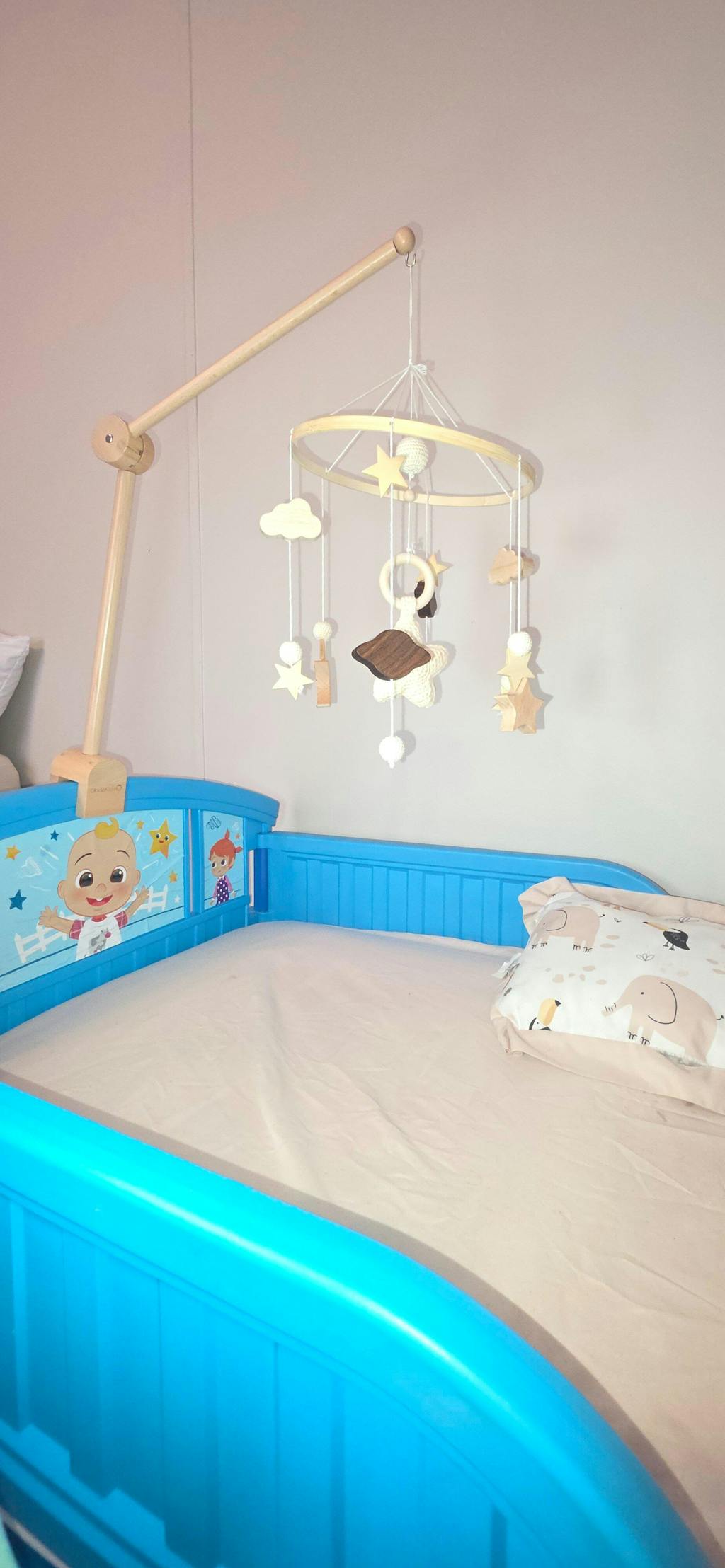 My little baby is delighted with this baby mobile for her bed. She can watch it for 10-15 minutes and be quiet. Very high-quality work. Holds up well. Delighted with this toy. I really recommend trying it.Perfect also for gift on baby shower.